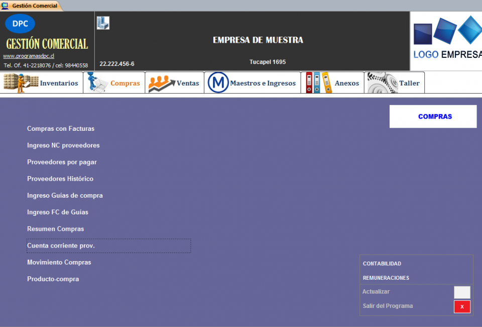 Panel Principal - Pestaña Compras