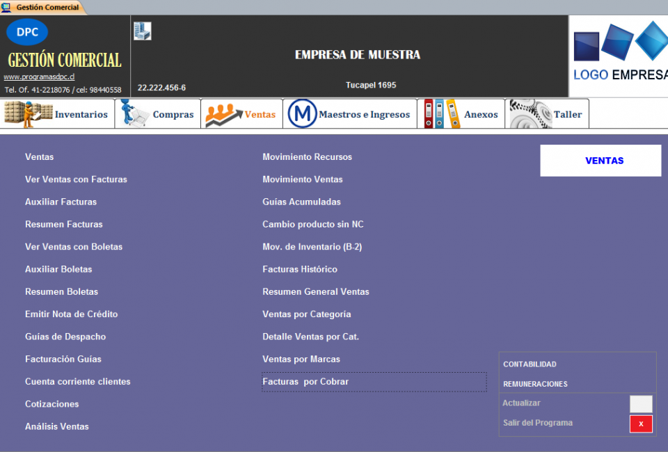 Panel Principal - Pestaña Ventas